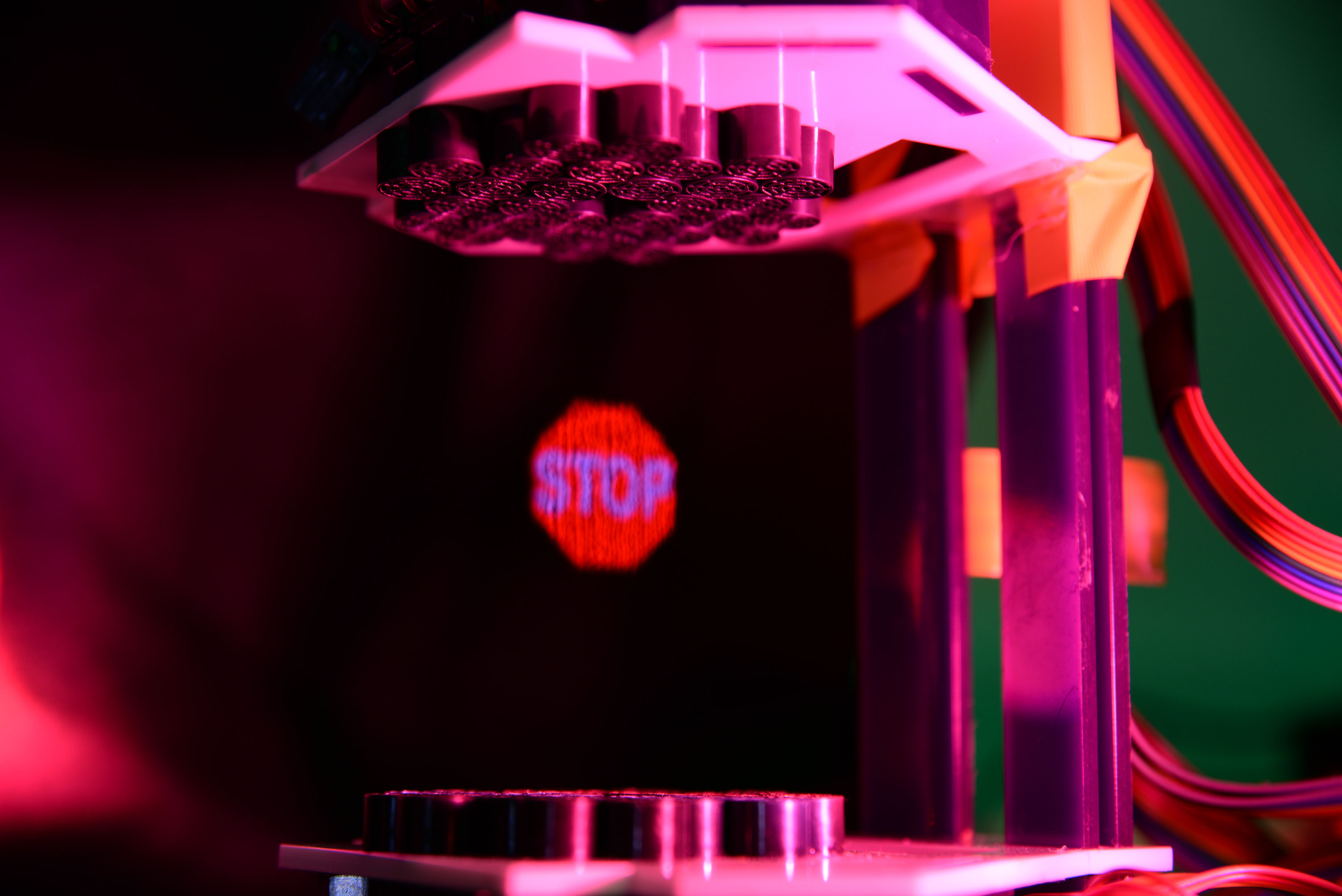 AVD is one of the latest application of acoustic levitation. Any display, including the ones on your computer, tablet or smartphone uses after image effect on your eyes to visualise information on your screen. AVD uses the same principle, and levitated particle (about 1 mm) move rapidly in space under the illumination of RGB LED.